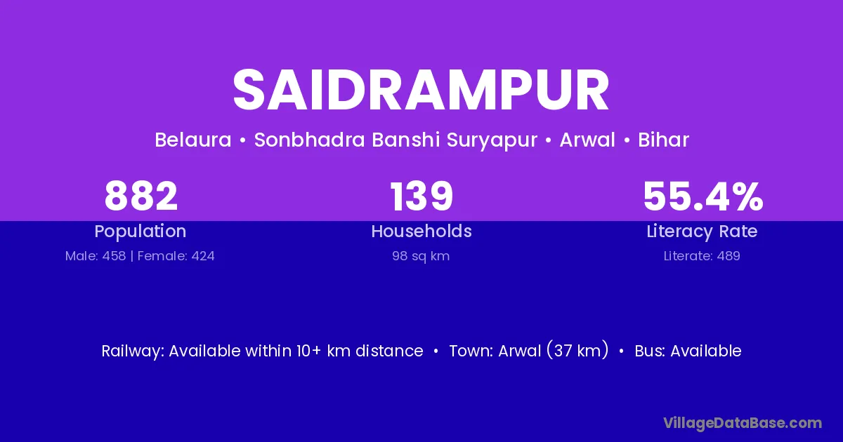 Arwal (37 km) is the nearest town to Saidrampur village for major economic activities and is located approximately 37 km away.