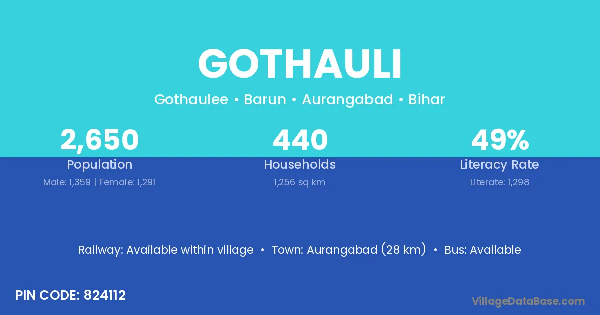 Aurangabad (28 km) is the nearest town to Gothauli village for major economic activities and is located approximately 28 km away.