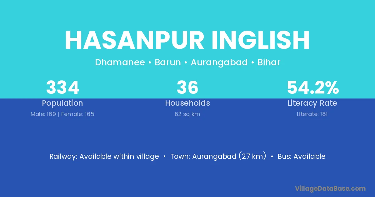 Aurangabad (27 km) is the nearest town to Hasanpur Inglish village for major economic activities and is located approximately 27 km away.