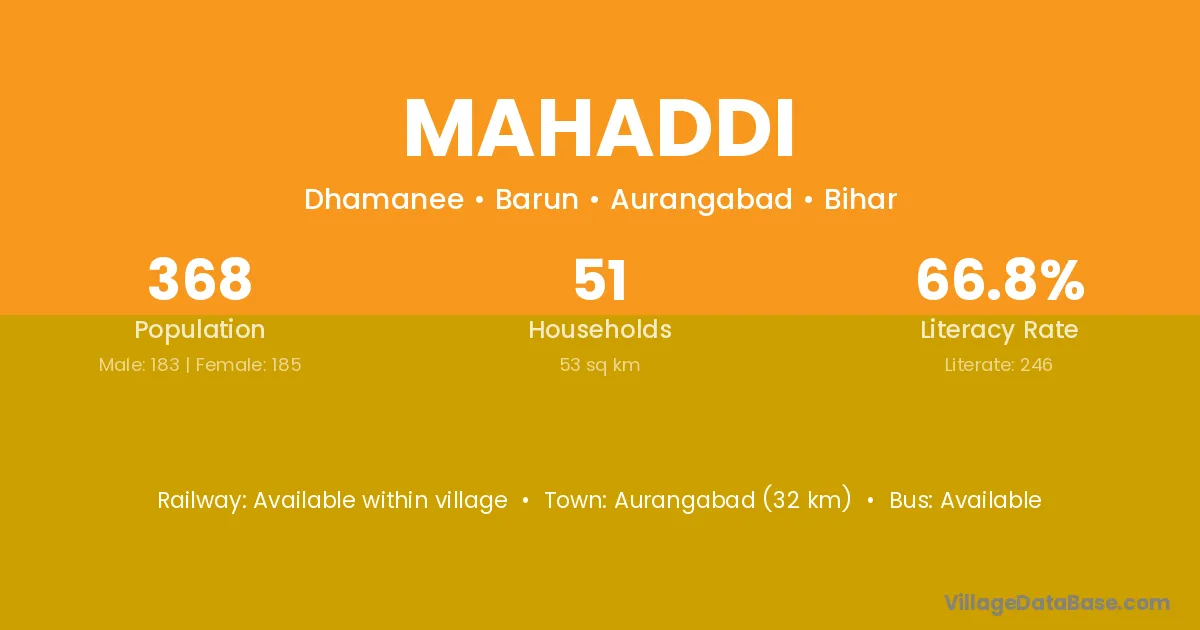 Aurangabad (32 km) is the nearest town to Mahaddi village for major economic activities and is located approximately 32 km away.