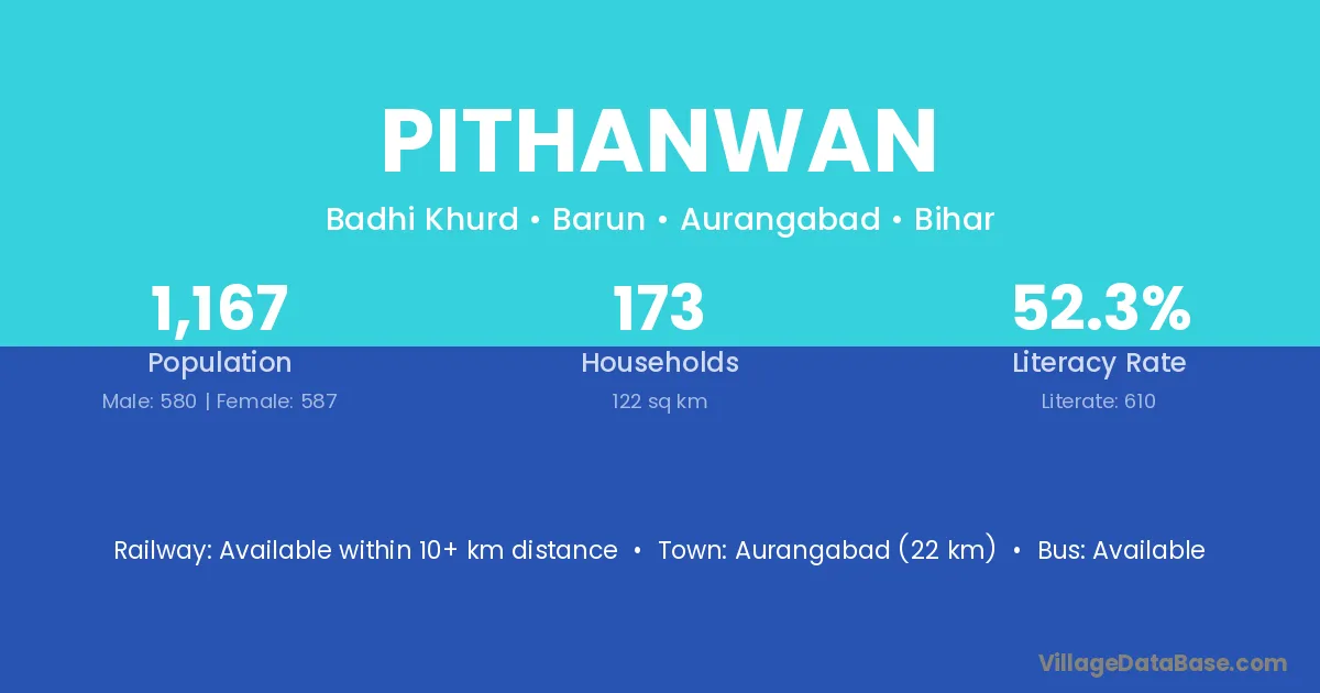 Aurangabad (22 km) is the nearest town to Pithanwan village for major economic activities and is located approximately 22 km away.