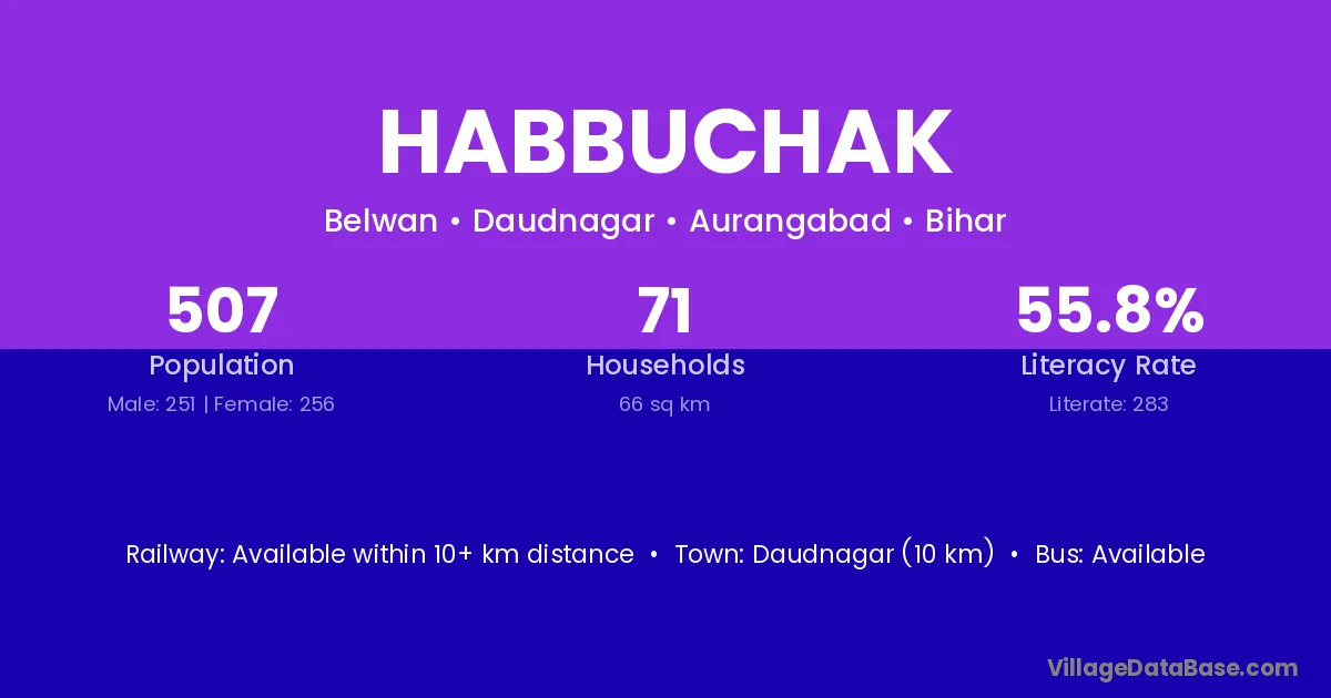 Daudnagar (10 km) is the nearest town to Habbuchak village for major economic activities and is located approximately 10 km away.