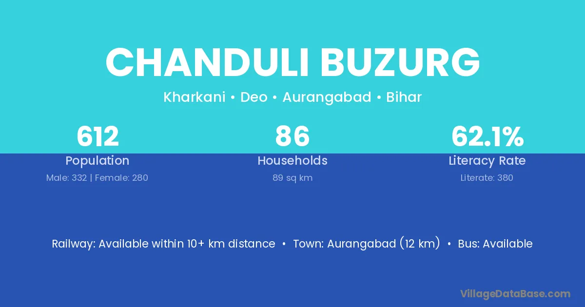 Aurangabad (12 km) is the nearest town to Chanduli Buzurg village for major economic activities and is located approximately 12 km away.