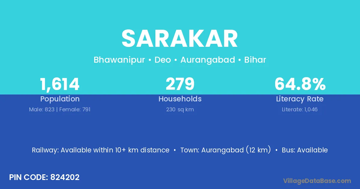 Aurangabad (12 km) is the nearest town to Sarakar village for major economic activities and is located approximately 12 km away.