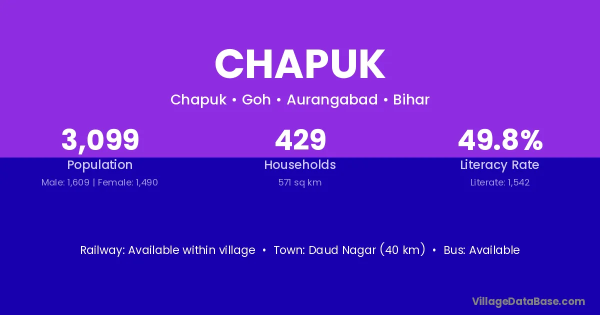 Daud Nagar (40 km) is the nearest town to Chapuk village for major economic activities and is located approximately 40 km away.