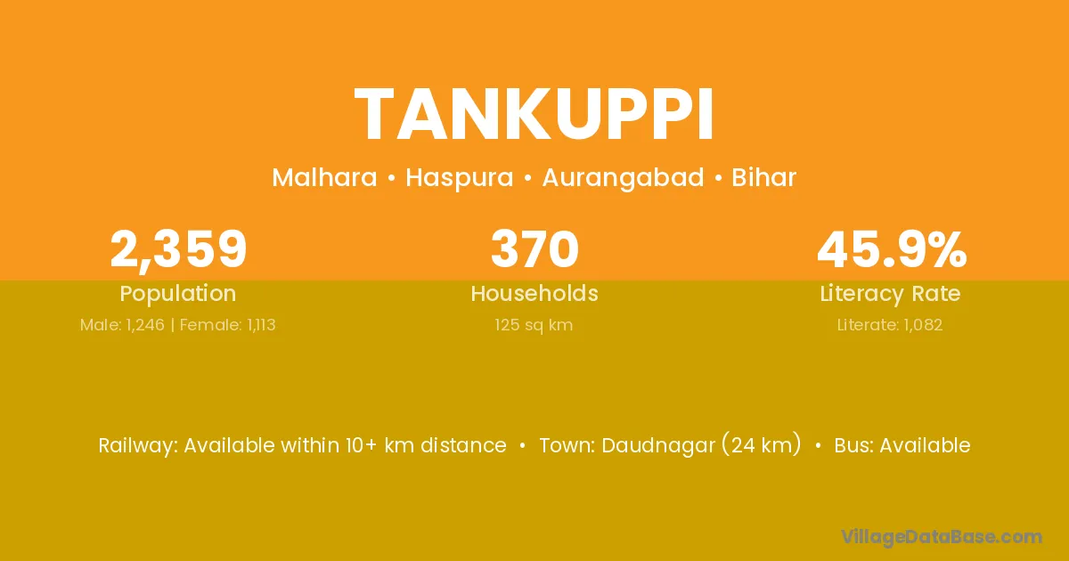 Daudnagar (24 km) is the nearest town to Tankuppi village for major economic activities and is located approximately 24 km away.