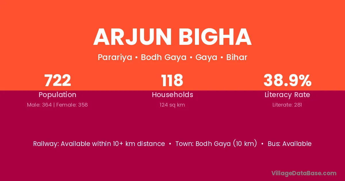 Aurangabad (21 km) is the nearest town to Arjun Bigha village for major economic activities and is located approximately 21 km away.