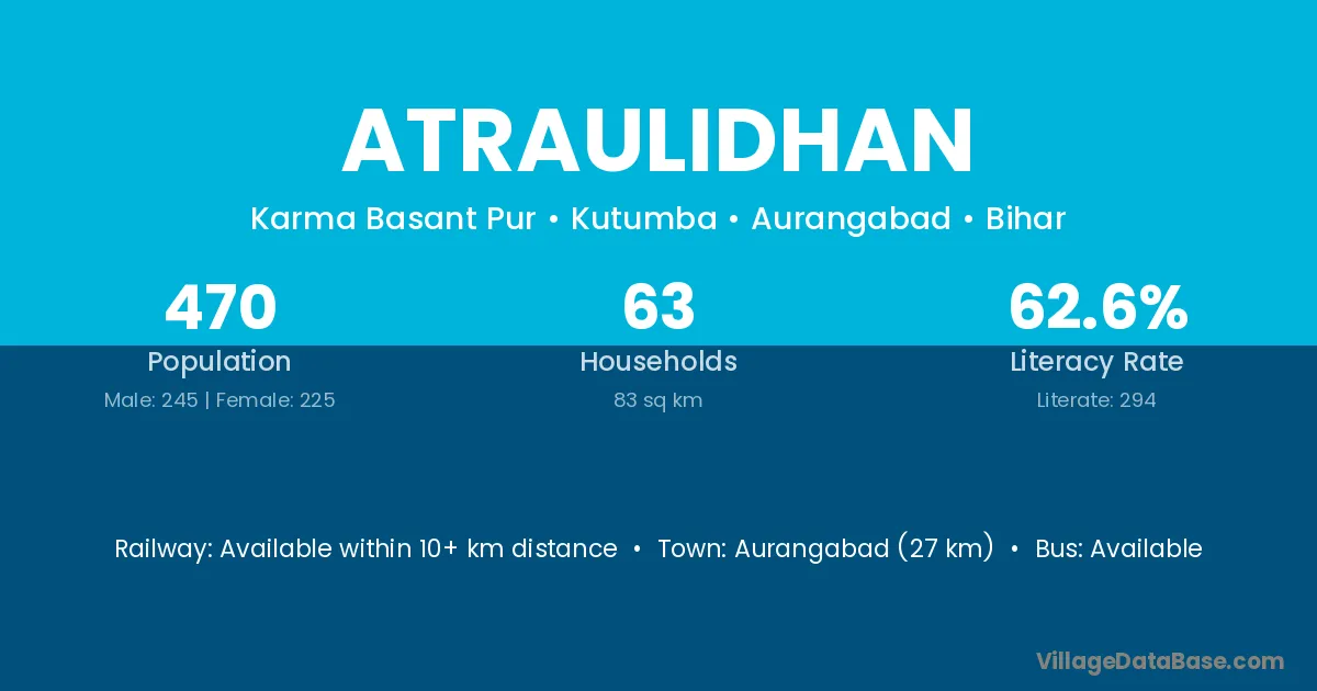 Aurangabad (27 km) is the nearest town to Atraulidhan village for major economic activities and is located approximately 27 km away.