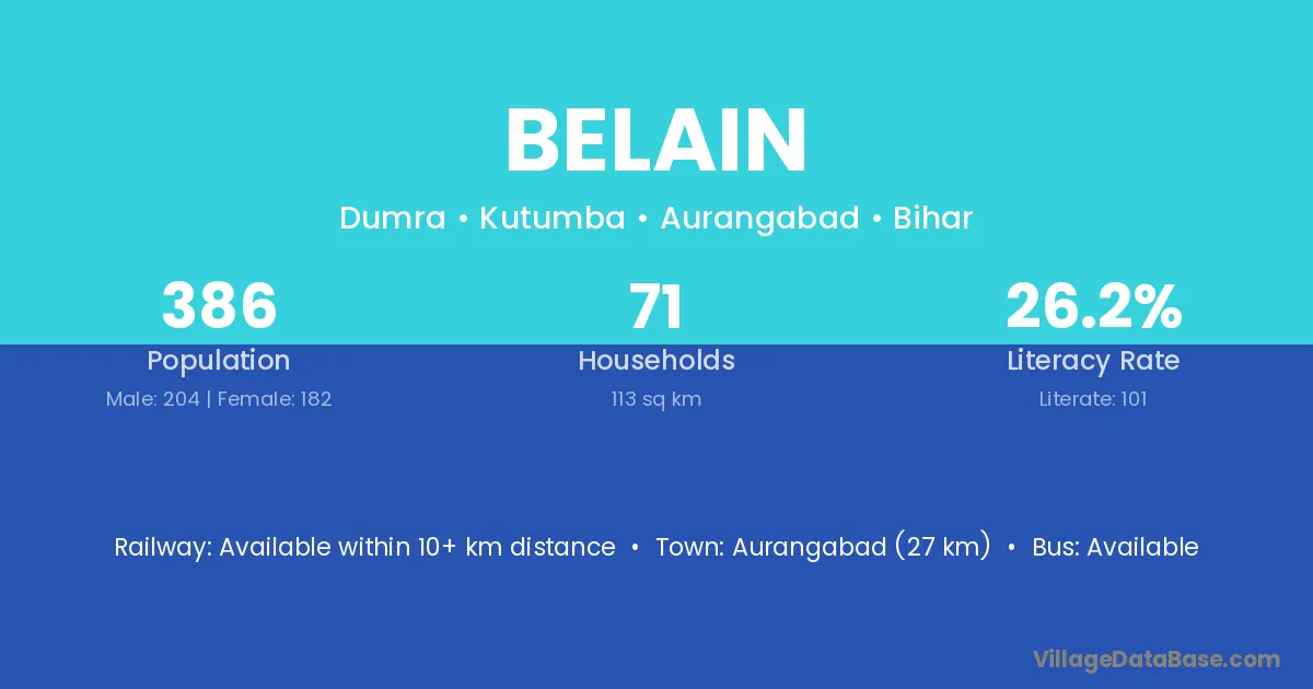 Aurangabad (27 km) is the nearest town to Belain village for major economic activities and is located approximately 27 km away.