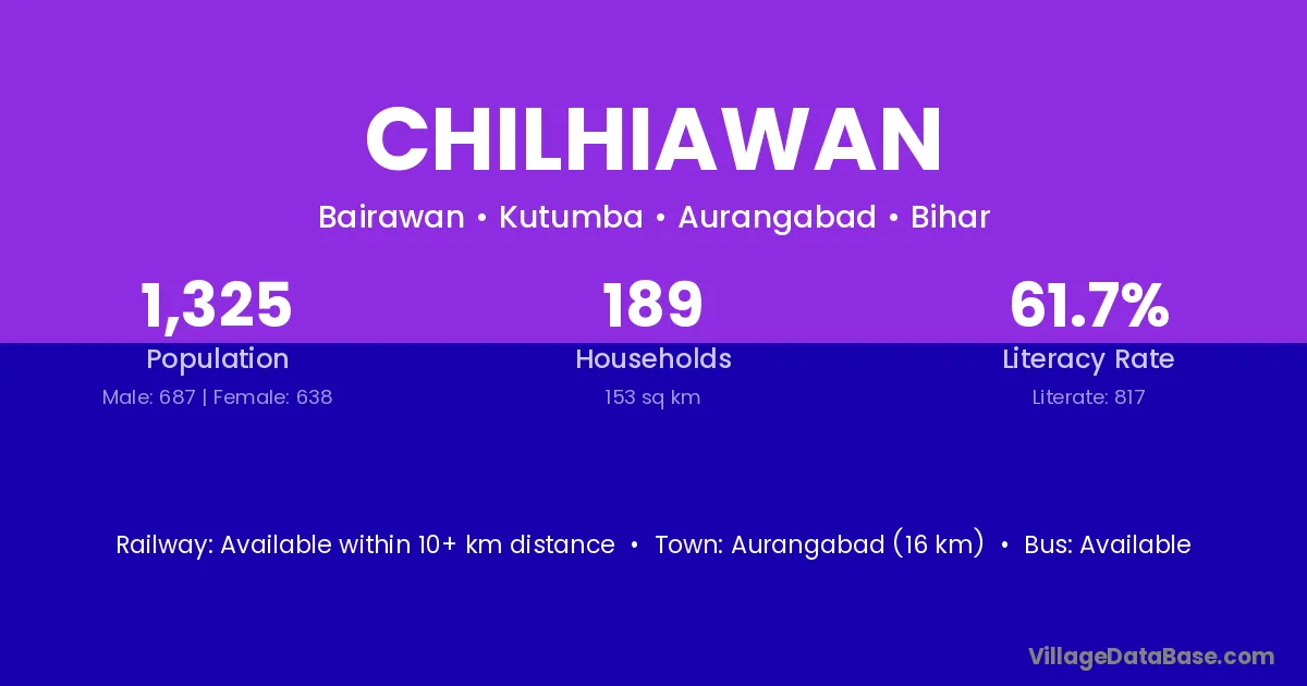 Aurangabad (16 km) is the nearest town to Chilhiawan village for major economic activities and is located approximately 16 km away.