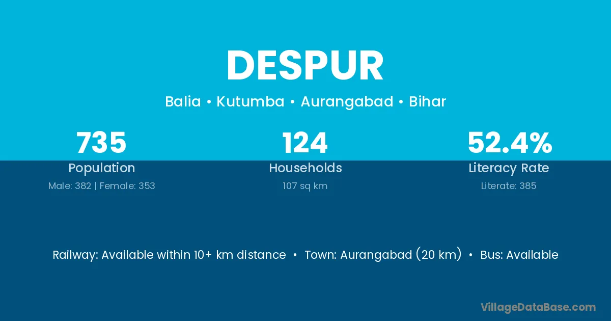 Aurangabad (20 km) is the nearest town to Despur village for major economic activities and is located approximately 20 km away.