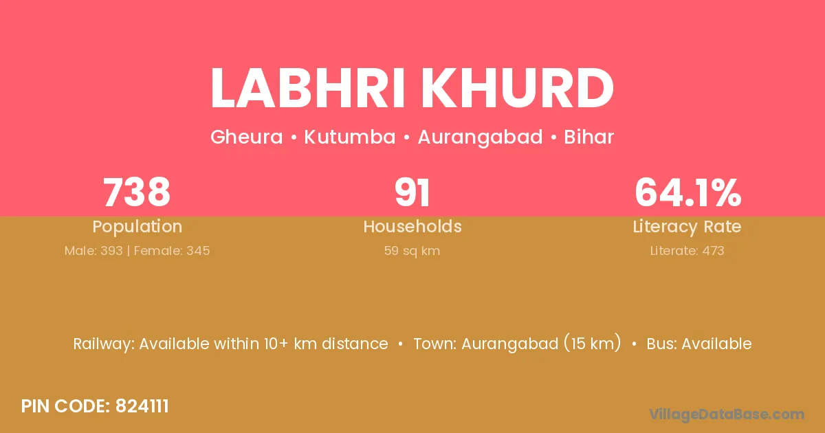 Labhri Khurd village has a total population of 738 people, of which 393 are males and 345 are females.
