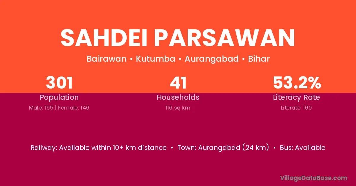 Aurangabad (24 km) is the nearest town to Sahdei Parsawan village for major economic activities and is located approximately 24 km away.