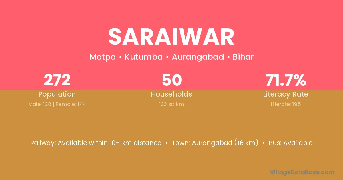 Aurangabad (16 km) is the nearest town to Saraiwar village for major economic activities and is located approximately 16 km away.