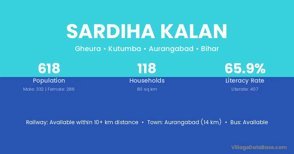 Aurangabad (14 km) is the nearest town to Sardiha Kalan village for major economic activities and is located approximately 14 km away.