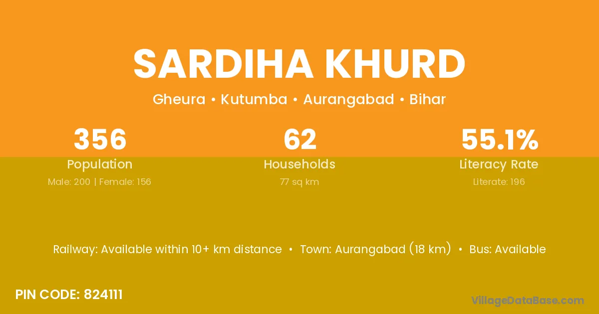 Aurangabad (18 km) is the nearest town to Sardiha Khurd village for major economic activities and is located approximately 18 km away.