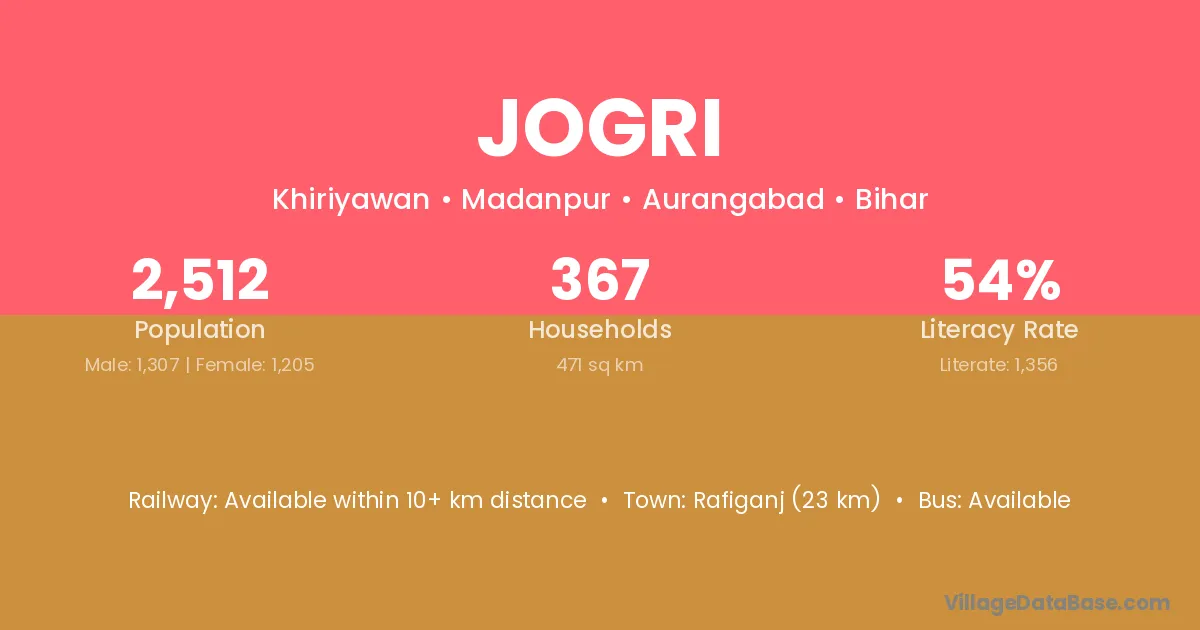 Rafiganj (23 km) is the nearest town to Jogri village for major economic activities and is located approximately 23 km away.