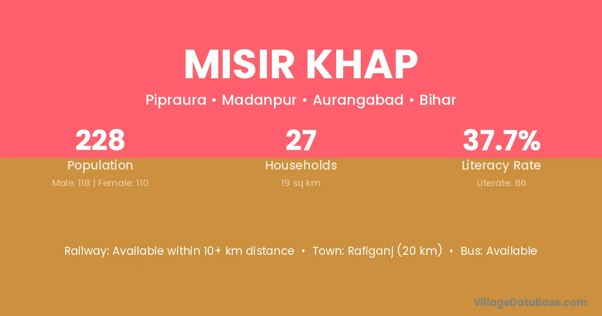 Rafiganj (20 km) is the nearest town to Misir Khap village for major economic activities and is located approximately 20 km away.