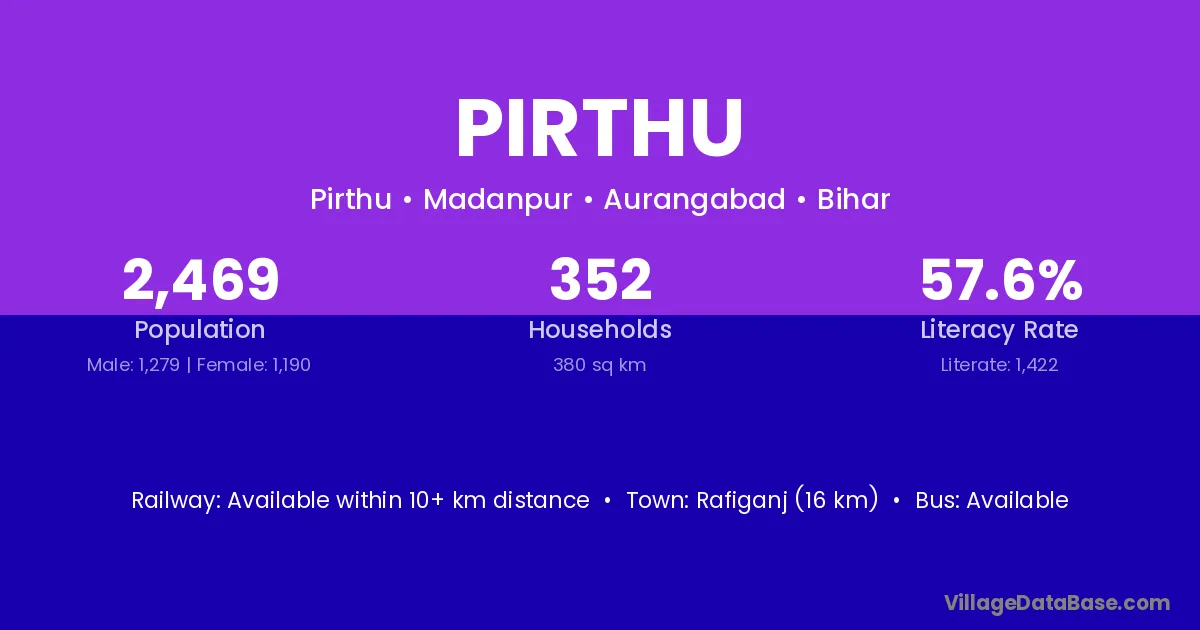 Rafiganj (16 km) is the nearest town to Pirthu village for major economic activities and is located approximately 16 km away.
