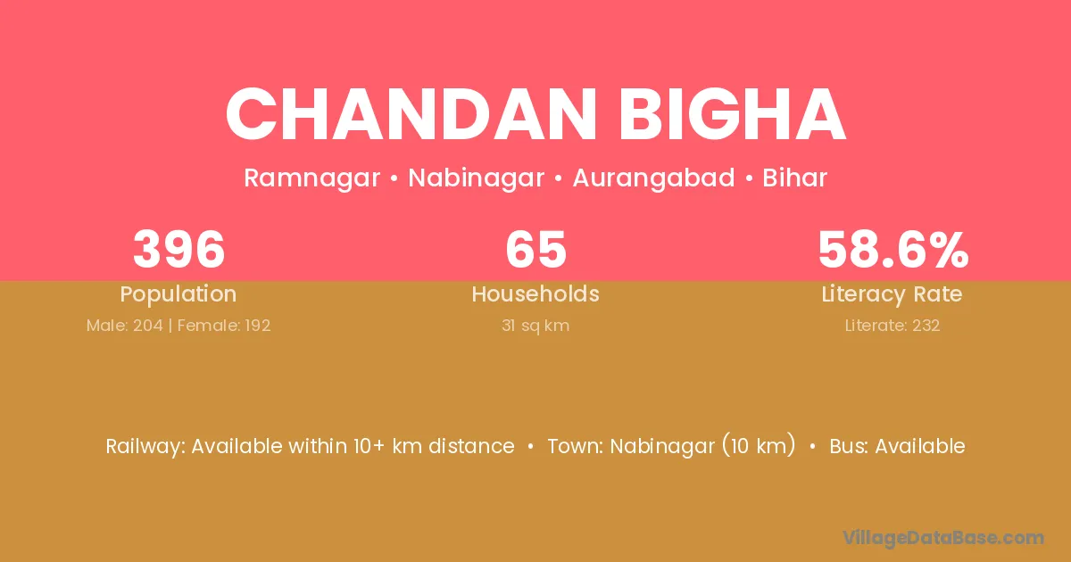 Nabinagar (10 km) is the nearest town to Chandan Bigha village for major economic activities and is located approximately 10 km away.