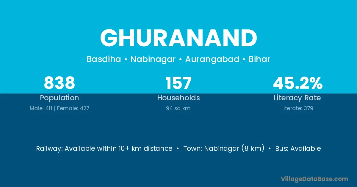 Nabinagar (8 km) is the nearest town to Ghuranand village for major economic activities and is located approximately 8 km away.