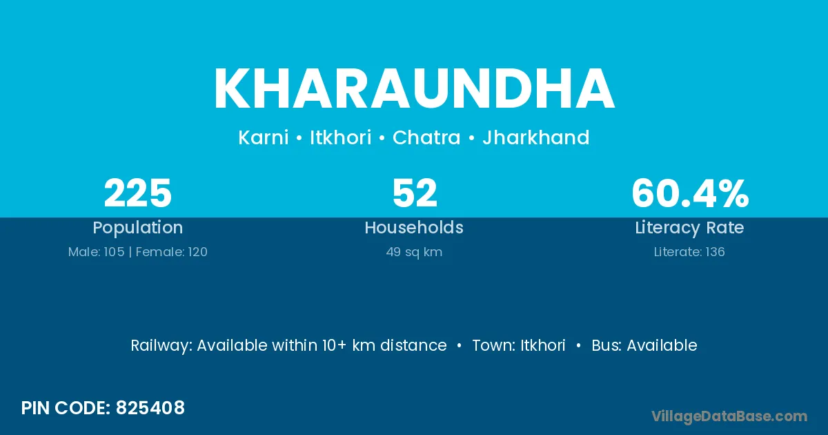 Nabinagar (8 km) is the nearest town to Kharaundha village for major economic activities and is located approximately 8 km away.