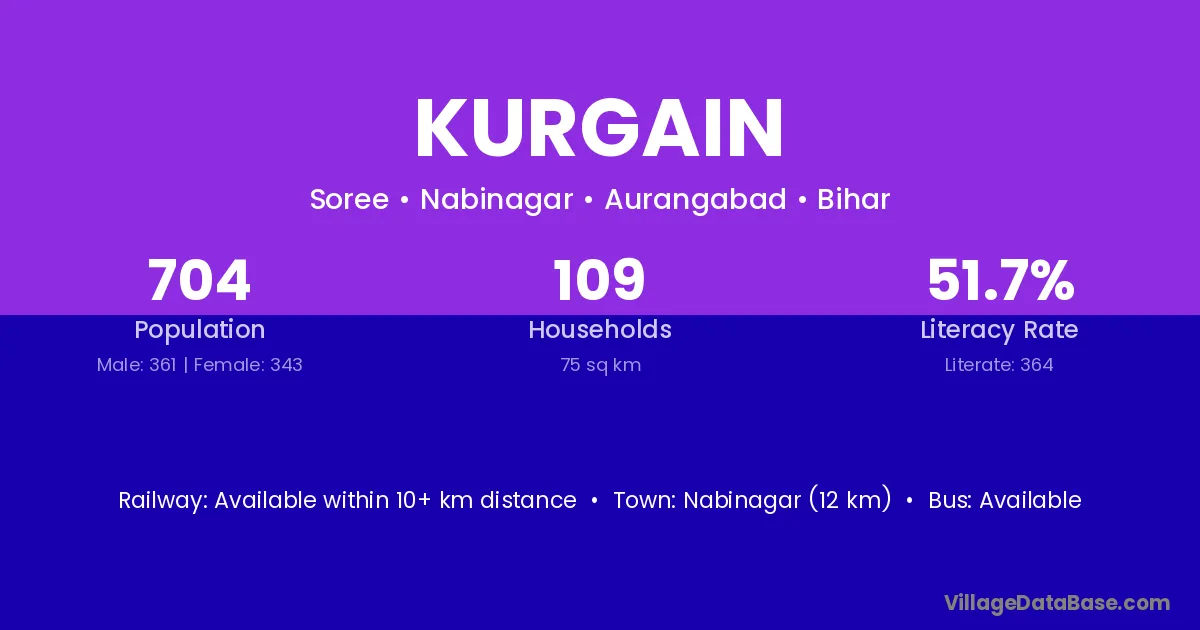 Nabinagar (12 km) is the nearest town to Kurgain village for major economic activities and is located approximately 12 km away.