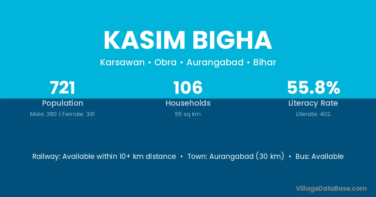 Aurangabad (30 km) is the nearest town to Kasim Bigha village for major economic activities and is located approximately 30 km away.