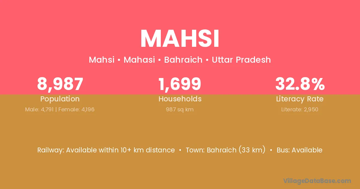 Aurangabad (26 km) is the nearest town to Mahsi village for major economic activities and is located approximately 26 km away.