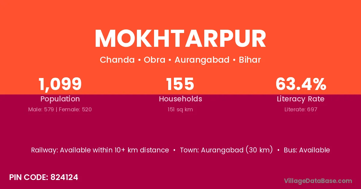 Aurangabad (30 km) is the nearest town to Mokhtarpur village for major economic activities and is located approximately 30 km away.