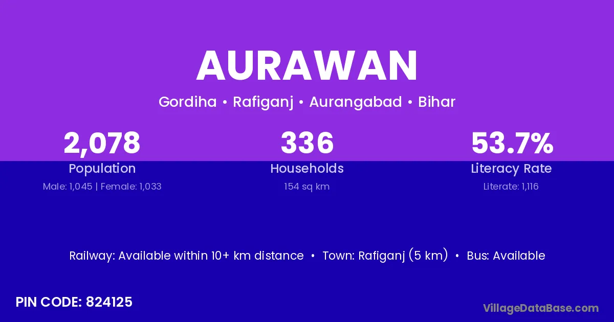 Rafiganj (5 km) is the nearest town to Aurawan village for major economic activities and is located approximately 5 km away.