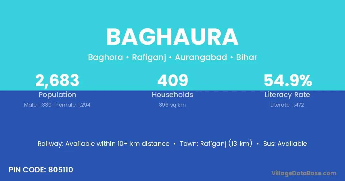 Baghaura village has a total population of 2,683 people, of which 1,389 are males and 1,294 are females.