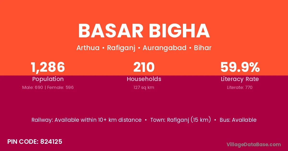 Rafiganj (15 km) is the nearest town to Basar Bigha village for major economic activities and is located approximately 15 km away.
