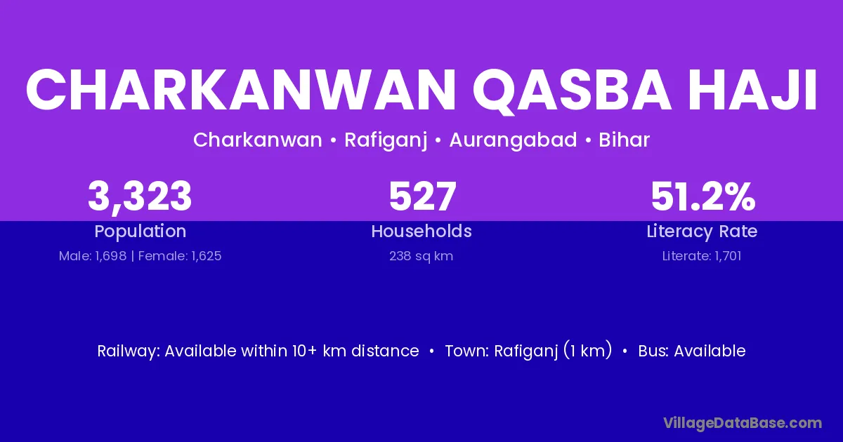 Rafiganj (1 km) is the nearest town to Charkanwan Qasba Haji village for major economic activities and is located approximately 1 km away.