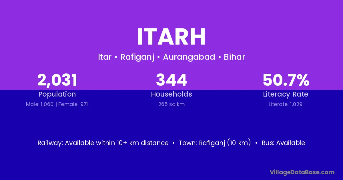 Rafiganj (10 km) is the nearest town to Itarh village for major economic activities and is located approximately 10 km away.