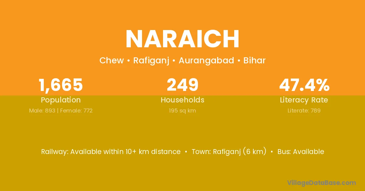 Rafiganj (6 km) is the nearest town to Naraich village for major economic activities and is located approximately 6 km away.