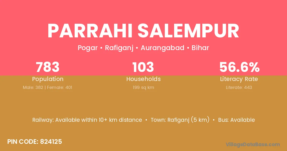 Rafiganj (5 km) is the nearest town to Parrahi Salempur village for major economic activities and is located approximately 5 km away.