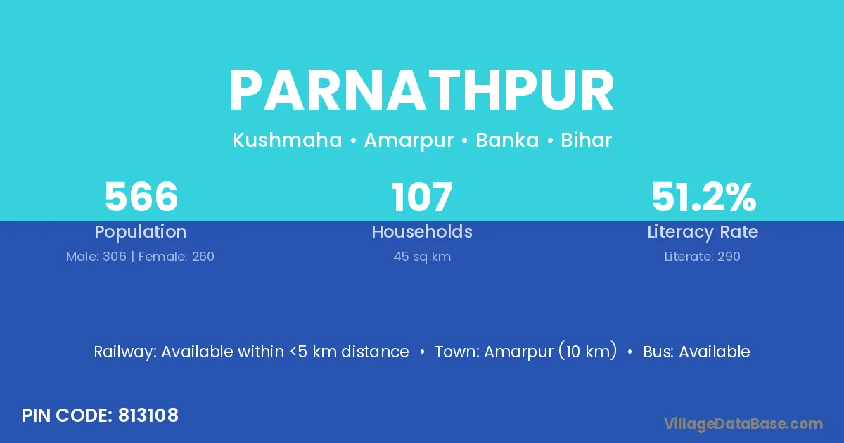 Parnathpur village has a total population of 566 people, of which 306 are males and 260 are females.