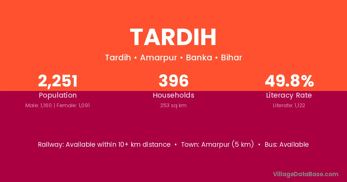 Amarpur (5 km) is the nearest town to Tardih village for major economic activities and is located approximately 5 km away.