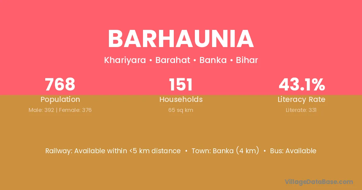 Banka (4 km) is the nearest town to Barhaunia village for major economic activities and is located approximately 4 km away.