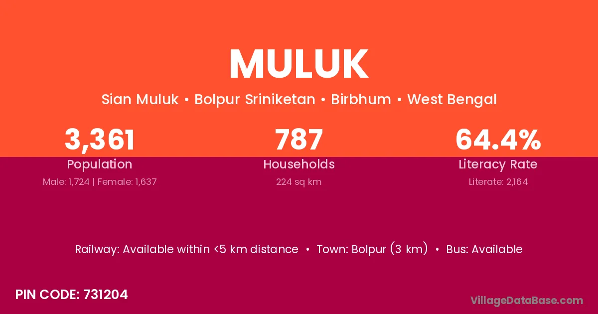 Banka (8 km) is the nearest town to Muluk village for major economic activities and is located approximately 8 km away.