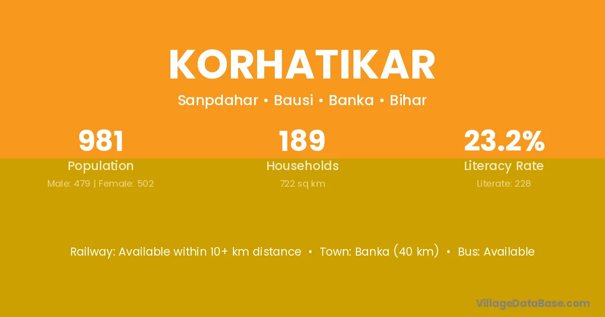 Banka (40 km) is the nearest town to Korhatikar village for major economic activities and is located approximately 40 km away.