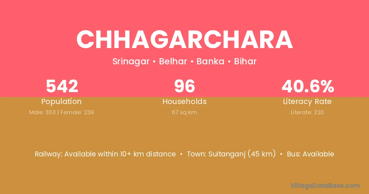 Sultanganj (45 km) is the nearest town to Chhagarchara village for major economic activities and is located approximately 45 km away.