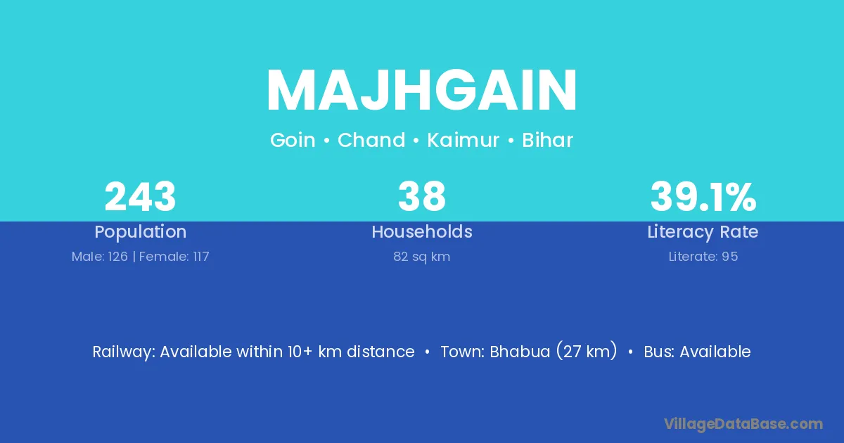 Banka (40 km) is the nearest town to Majhgain village for major economic activities and is located approximately 40 km away.