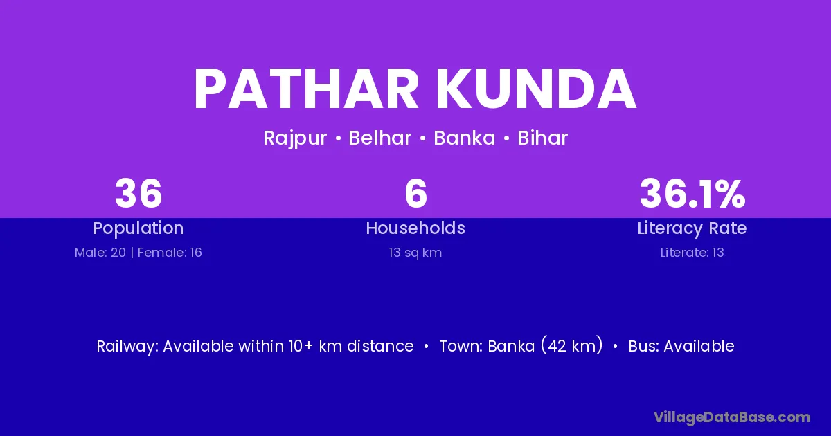 Banka (42 km) is the nearest town to Pathar Kunda village for major economic activities and is located approximately 42 km away.