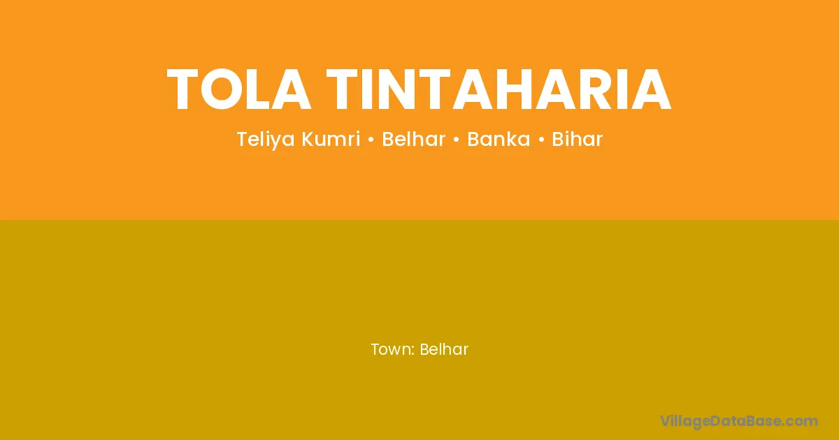 Tola Tintaharia village is located in the Belhar Subdivision of the Banka district in Bihar .