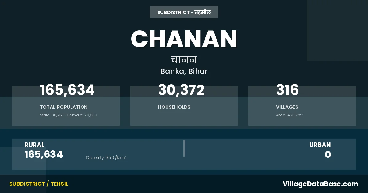 Chanan is a town and Subdivision in the Banka district of the Bihar. In India, a Subdivision is a subdivision of a district responsible for the administration and revenue collection of a specific area within the district. Subdivisions play a crucial role in the local governance structure, contributing significantly to the development and administration of their communities.