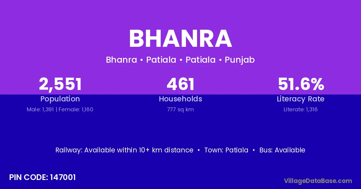 The literacy rate of Bhanra village is 49.33%. Male literacy stands at 62.78% and female literacy at 34.10%.
