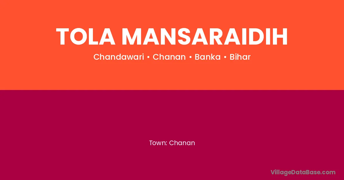 Tola Mansaraidih village is located in the Chanan Subdivision of the Banka district in Bihar .