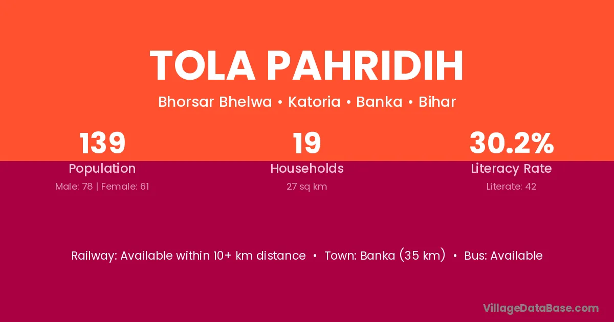 The population of Tola Pahridih village is distributed between literate and illiterate residents as follows: